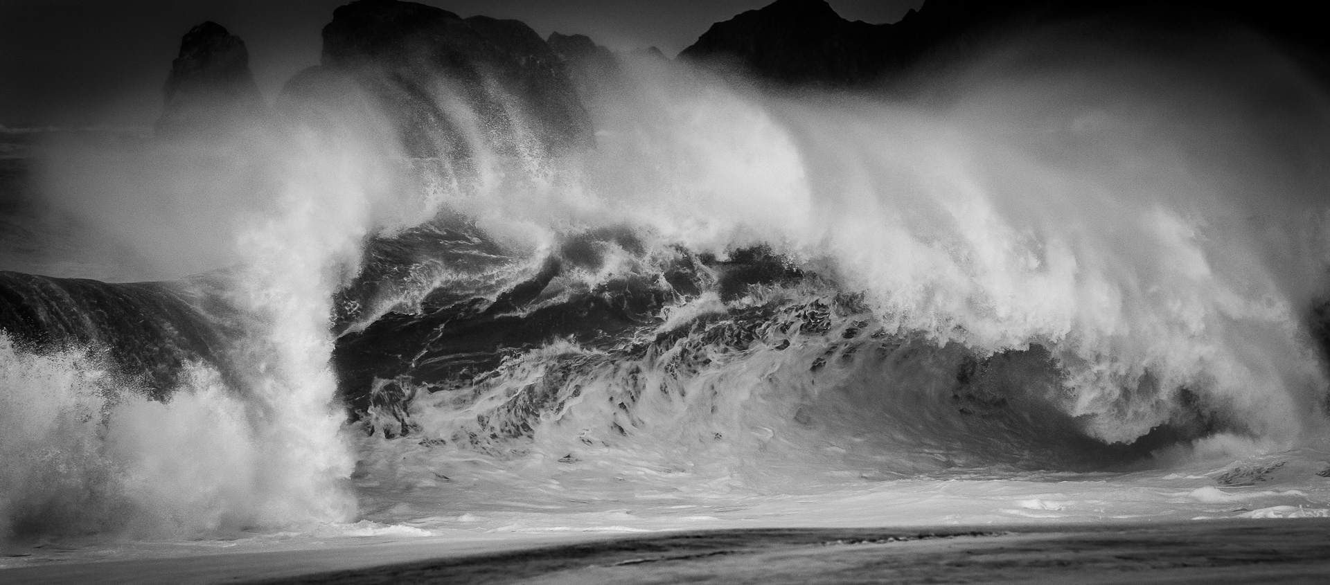 Thunderous liquid sculptures Magnificent castles of water and foam Ripples from the deep sea Stumbling suddenly upon shallow water I long to capture your evanescent gestures And marvel at your untamed nature -- Angelic and grotesque, Tempestuous and transcendent